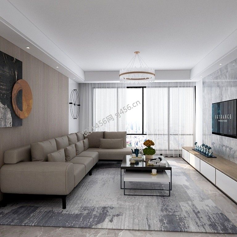 天鹅湖花园130㎡三居室现代简约装修案例风效果图