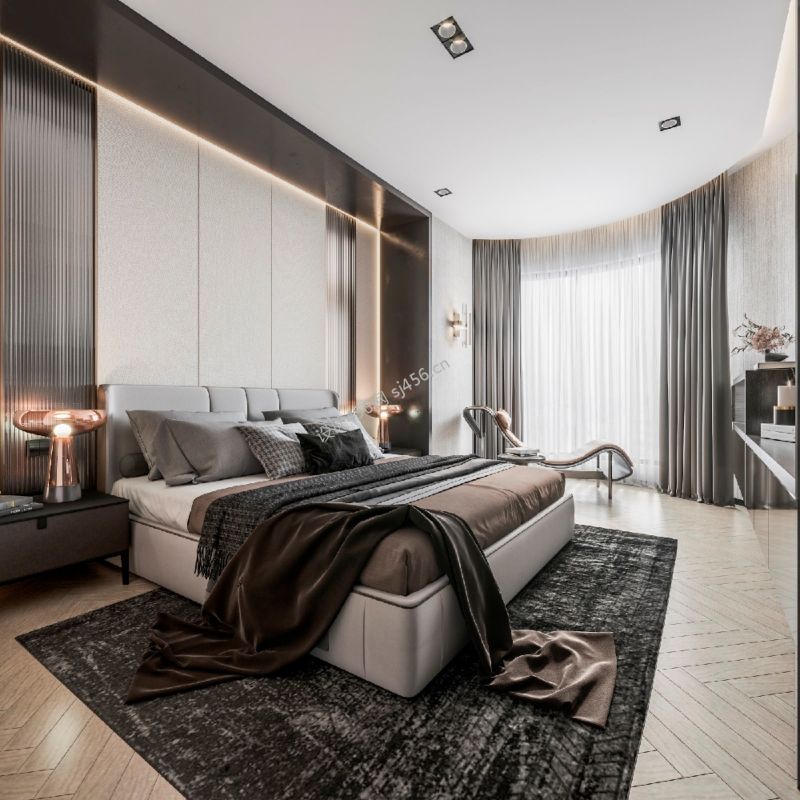两江国际120㎡三居室现代轻奢装修案例风效果图
