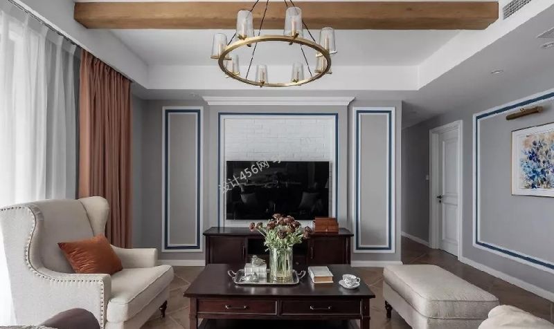 银杏华庭133平三居室美式经典风格装修案例风效果图