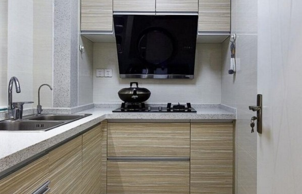 1、小厨房也可以使用全套橱柜来体现,可以搭配草绿层面的纹理感,也可以使用浅色的色调也在触觉上将小厨房面积增大,业主还就能够在料理台后面背景墙运用亮面且平坦的花样装点,既拥有全部屋里反光的效应,还能维护屋里房子里厨房的整洁,也带来清洁的便捷,加强了新房厨房的所有原始感。