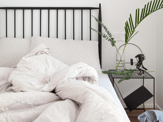 次卧布置的更加简单一些,黑色的大床简单大方,搭配灰白色的被褥,能够营造出一种轻松舒适的生活环境,卧室以黑色与白色为主,能够让室内显得十分文艺有格调感。为了让室内显得更加丰富多彩,也在床头摆放了一些绿植点缀,从而让室内显得更加清新自然。