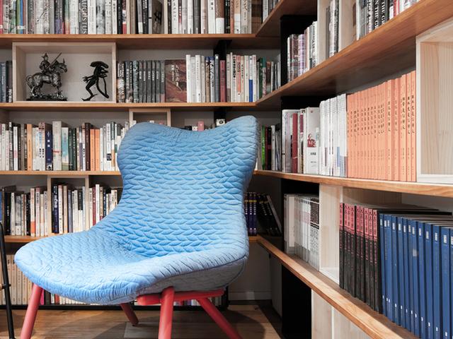 书房背景墙上采用打柜的方式,多层的书架采用入墙式的安装方式,呈L型摆放安装,能够摆放很多书籍与装饰品,从而让书房显得更加文艺有立体感,让读书有了更好的氛围。还能把这里当做一间茶室,闲暇的时候可以朋友一起喝杯茶聊聊天,能够让生活更加时尚有内涵。