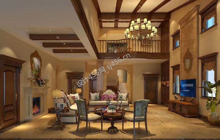 麓山国际美式风格350平米别墅装修案例风效果图