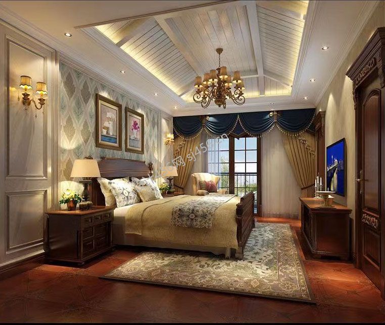 美式风格350平别墅卧室吊顶装修设计图