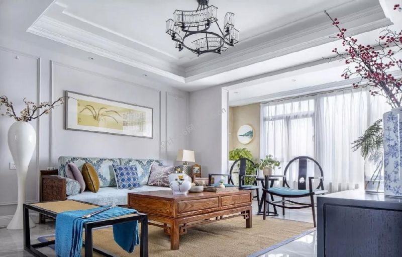 华润橡树林98平二居室新中式风格装修案例风效果图