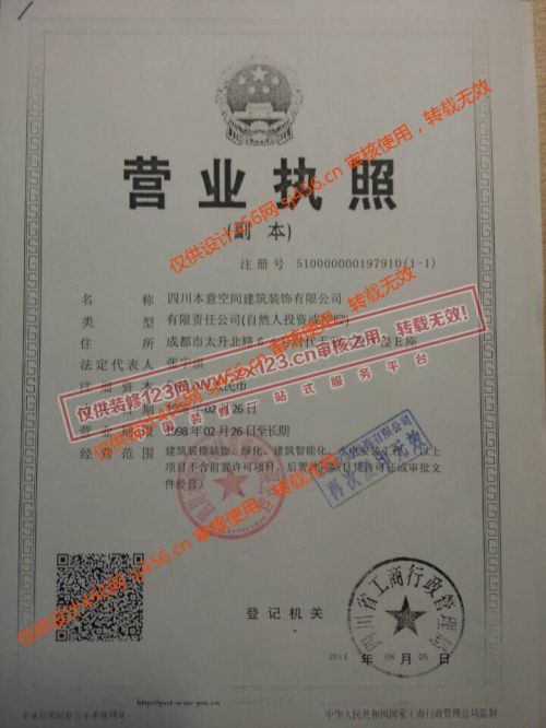 四川(上海)本意空间建筑装饰有限公司成立于1998年,2008年进入成都市场,是一家集建筑室内设计、施工以及建材、整体配套服务一体化、品牌化、规模化的装饰企业。公司经过不断的改善和努力现已成为成都市前十强装饰公司。 公司目前不仅拥有一支由30多名优秀设计师组成的一流设计团队,一支高效、严格的工程质监管理团队,更有客服管家为您提供及时、完善的装前、装中、装后服务,全力为您提供一个省心省力的愉悦家装体验。同时公司的办公大楼高升大厦12楼整层办公场地,约1500平米。