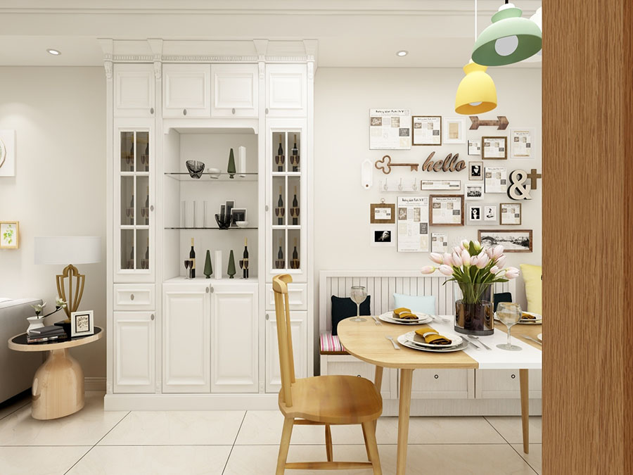 北欧的清新,搭配白色酒柜的纯粹,在这闲暇之余,把酒言欢,这无疑不是一个休闲的小天地。