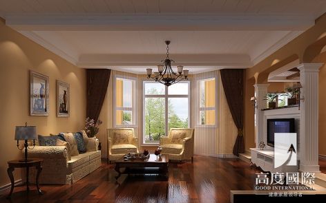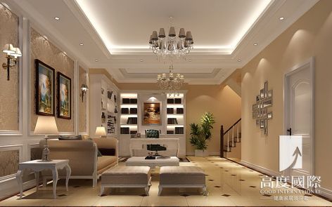 皇冠国际简欧186平别墅客厅装修案例