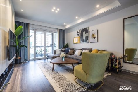九龙仓御园120平三居室现代简约风格装修案例风效果图
