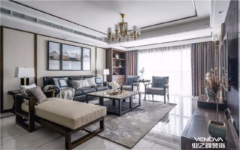 135平三居室新中式风格客厅装修效果图