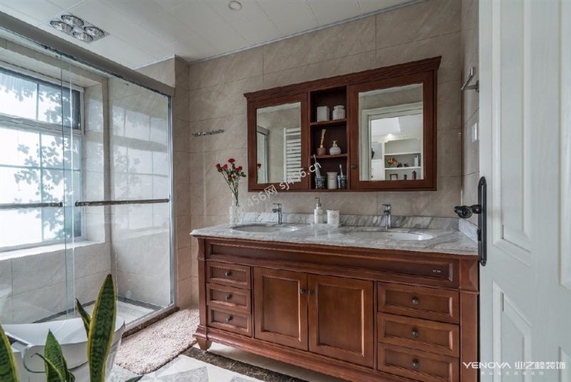 180平四居室美式经典风格洗手台装修效果图