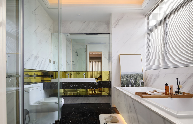 设计主旨在于探索设计与人生的至高境界,珍视地域文化,发展中国特色,谱写属于时代背景下的设计新篇章。在新中式中我们经常可以看到天然大理石的身影,自然温润又自带一点高冷质感的大理石更能展示新中式的意境与独到韵味。
