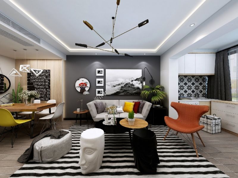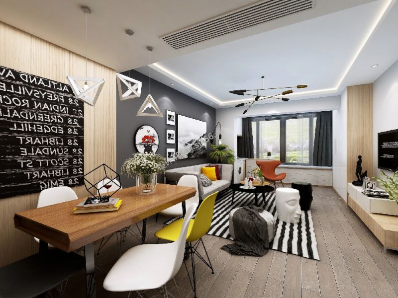南湖逸家北欧风格86平米二居室装修案例风效果图