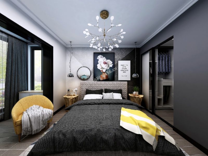 半山卫城北欧风格86平米二居室装修案例风效果图