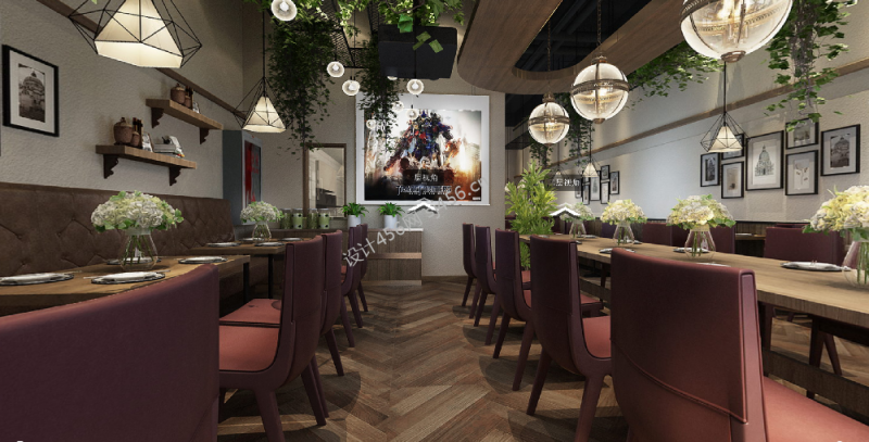 鹏伟装饰 180㎡美式田园风格西餐厅装修案例