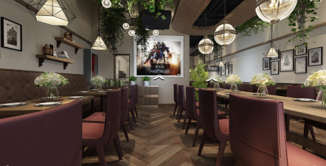 160㎡简约+撞色咖啡厅装修案例风效果图