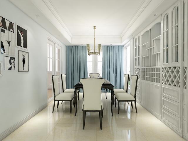 餐厅布置的十分简单地方,使得餐桌以黑白色为主,与周围浅灰色的格调非常好的搭配在了一起,使得餐厅显得非常时尚有格调感。餐桌简单大方,搭配几把舒适的椅子,能够营造出一种温馨舒适的用餐环境。餐边柜非常精致,采用入墙式的安装方式,既美观又能节省不少的空间,同时也能将餐厅的物品整齐的收纳起来,让餐厅显得更加宽敞舒适。