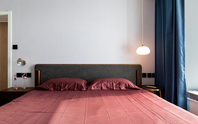 主卧面积不大,所以把室内墙壁刷成了白色的格调,搭配浅色的实木地板装饰,能够大大提升室内的档次感与舒适度。高级灰色的大床非常精致宽敞,搭配粉红色的被褥,显得非常温馨,能够让卧室显得更加温馨有情调。在飘窗上还铺上了舒适的坐垫,闲暇的时候可以晒晒太阳喝杯咖啡,让生活更加时尚有情调。