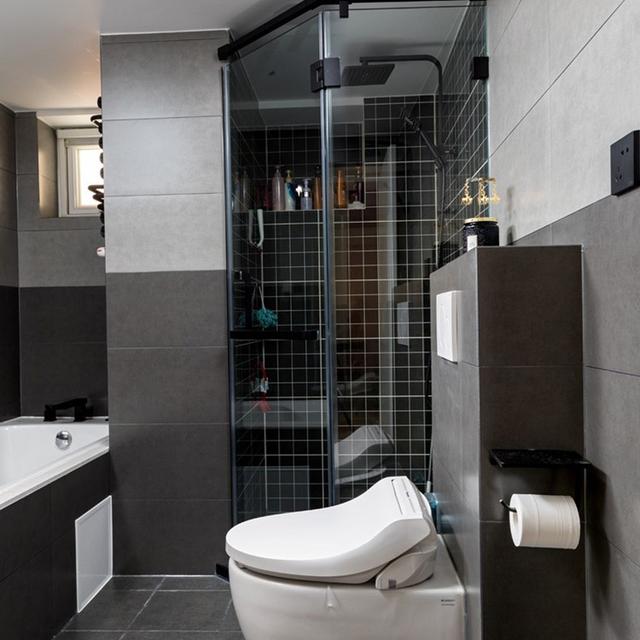 卫生间墙壁上采用了高级灰色的瓷砖装饰,使得卫生间显得非常时尚有层次感,日常打理起来非常便利。在卧室巧做干湿分离,打造了一间精致的淋浴房,能够起到非常好的防水效果,日常打理起来非常便利。在淋浴房内部还做了入墙式的隔板,能够摆放收纳一些小件物品,能够将洗浴用品整齐的收纳起来,能够让卫生间显得更加整齐大方。