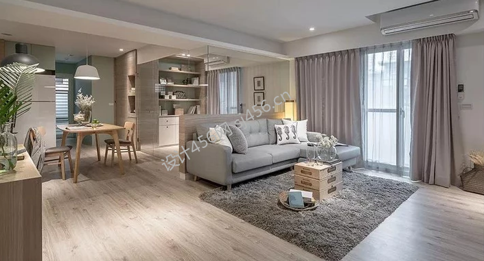 100平米三居室北欧风格客厅餐厅一体装修案例