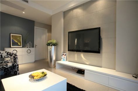 保利学府城三居109平现代风格客厅瓷砖电视背景墙设计