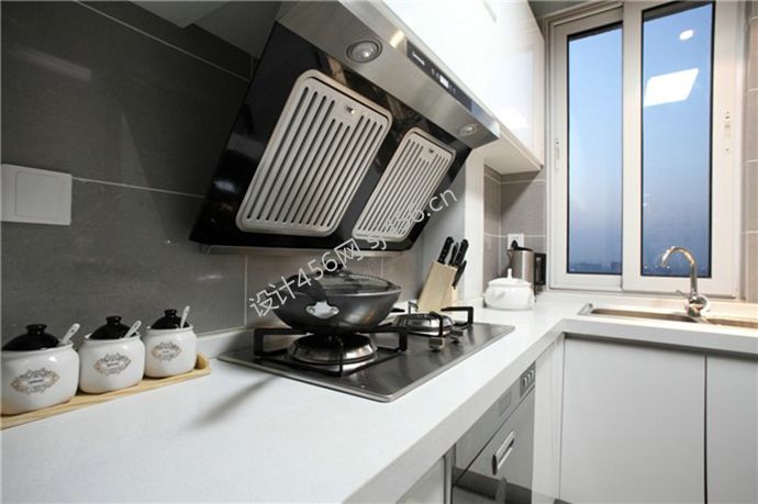 保利学府城三居109平现代风格厨房抽油烟机效果图