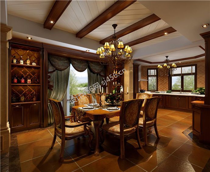 鹭湖宫365平别墅美式风格餐厅酒柜效果图