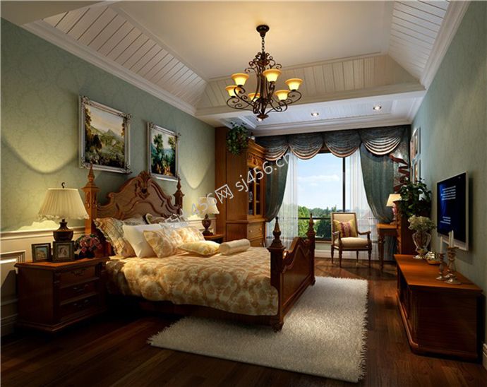 鹭湖宫365平别墅美式风格卧室灯具效果