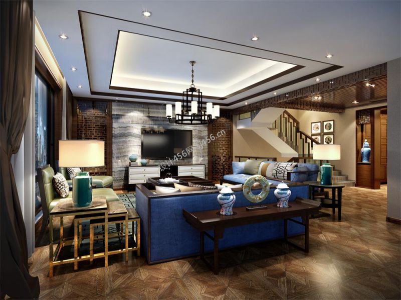 新中式别墅起居室装修效果图