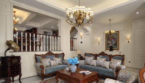 林溪美城280平美式经典风格别墅装修案例风效果图