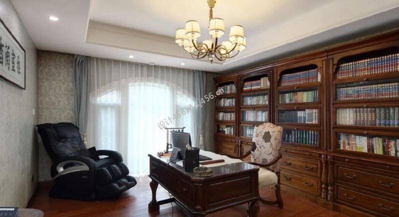 林溪美城280平美式经典风格别墅装修案例风效果图