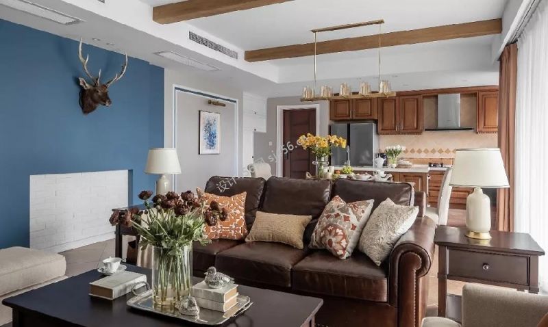 恒大豪庭128平三居室美式经典风格装修案例风效果图
