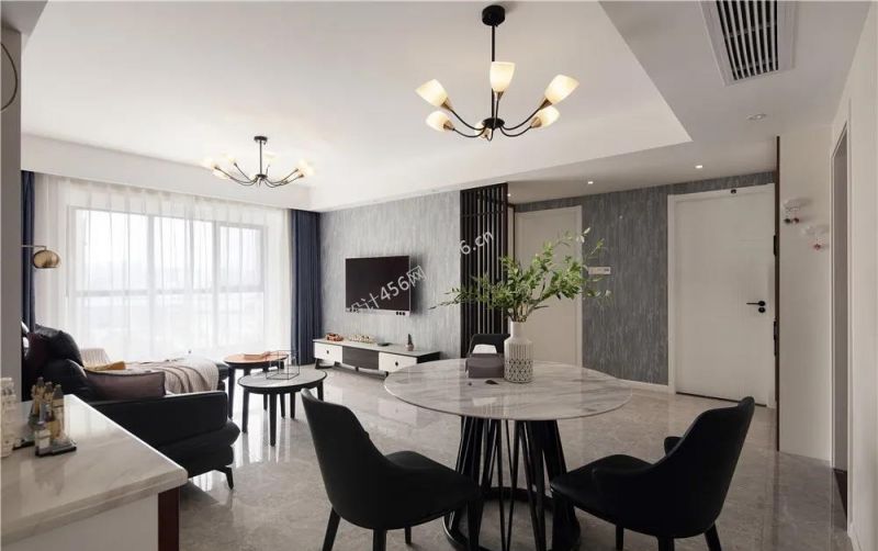 龙湖梵城126平三居室现代简约风格装修案例风效果图