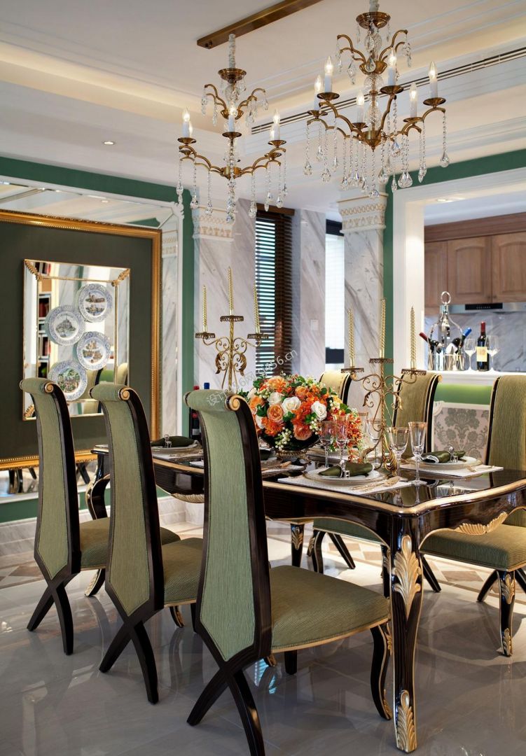 新古典别墅餐厅整体装饰装修效果图