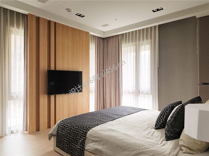 现代简约风格100平米三居室卧室电视墙实景图