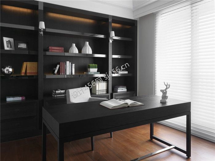 103平米三室两厅时尚简约风格书房书柜装修图片