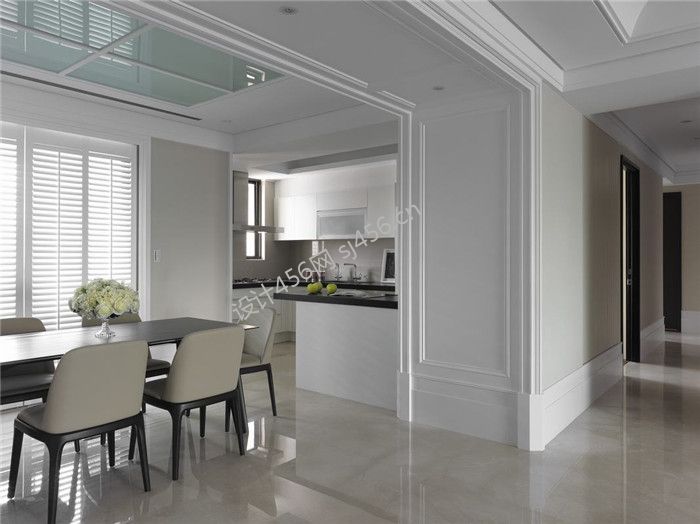 103平米三室两厅时尚简约风格餐厅厨房设计图片