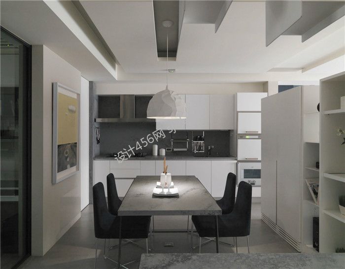 现代风格80平米三居室餐厅厨房装修实景图片