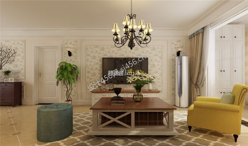 洛克设计事务所 蓝润锦江春天130平欧式风格装修案例
