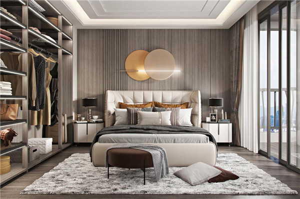 为了更舒适的人性化体验,建议在卧室门口与床头,分别设置双控开关,并在动线上安排感应式夜灯,避免下床抹黑行走。在衣柜中加装灯带,可以避免抹黑翻找衣物的尴尬,也能避免开灯打扰正在休息的另一半。