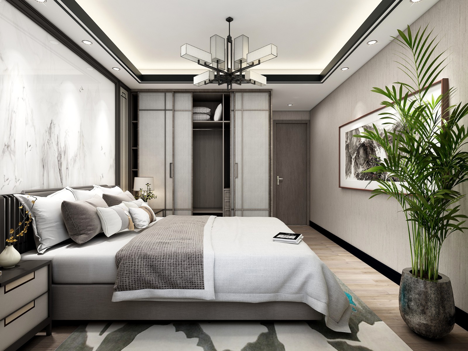 卧室是休闲放松的地方,没有客餐厅选择配色深沉,浅色系让人看起来更为舒适。