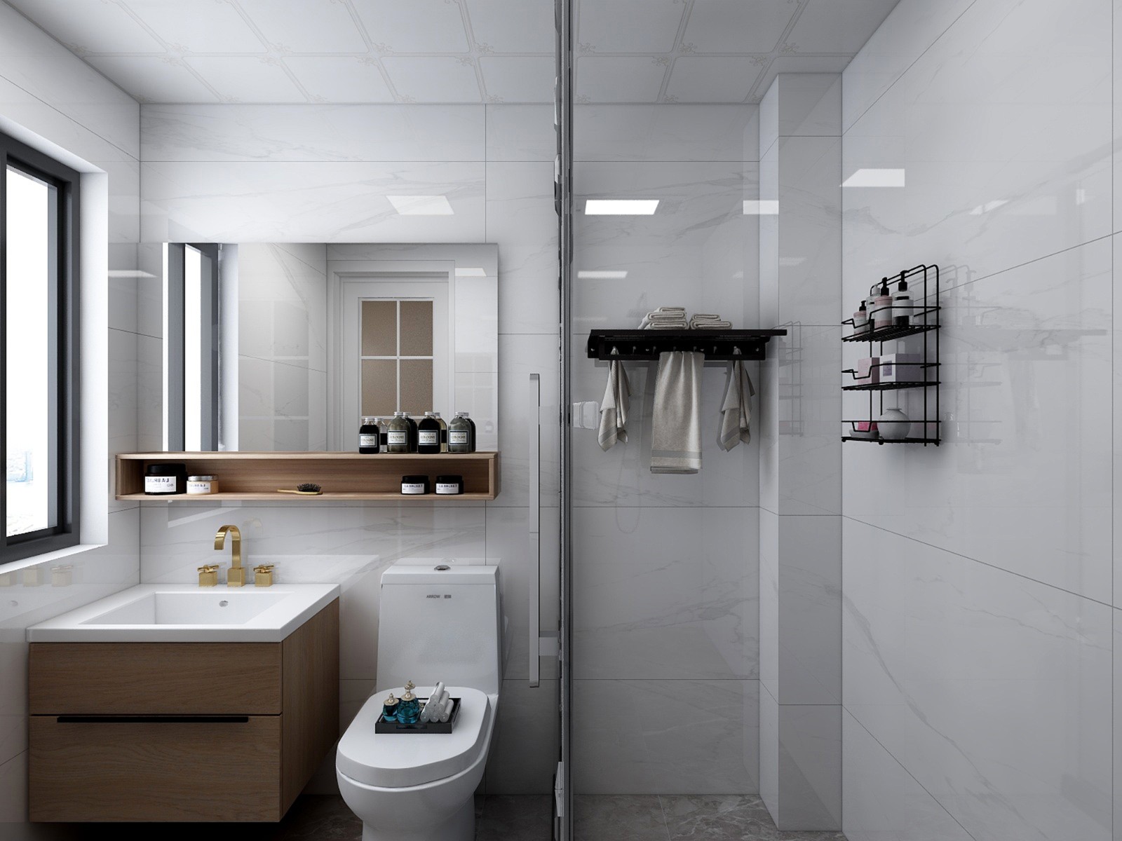 浴室柜都采用悬挂式设计,防止地面有污水,侵害柜体,玻璃门设计,有效防止了水的流出。