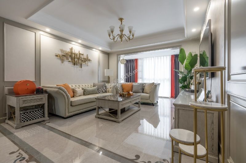 天朗锦邸190平平层美式轻奢风格装修案例风效果图