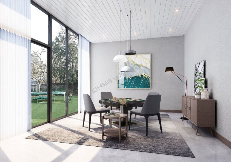 320㎡别墅中式风格棋牌室装修效果图