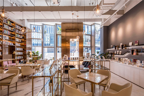 咖啡店的休闲舒适、书店的优雅宁静,两者都是一种静谧的氛围环境,尽管都表现了出避世离俗,可是也不能深居简出。设计师要合理对空间进行布局分布,书架各个功能区和品类区都要做到一目了然,清晰合理,室内桌椅也尽量分散布局,为阅读者留下充足的个人空间。