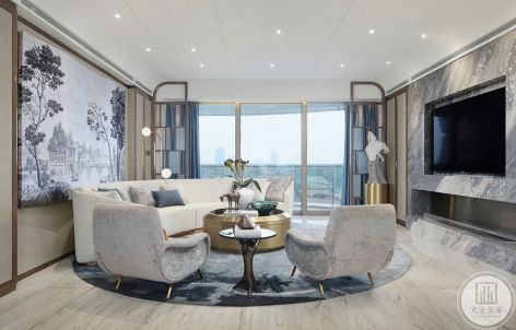 麓岭汇现代简约风格200平米别墅客厅装修效果图
