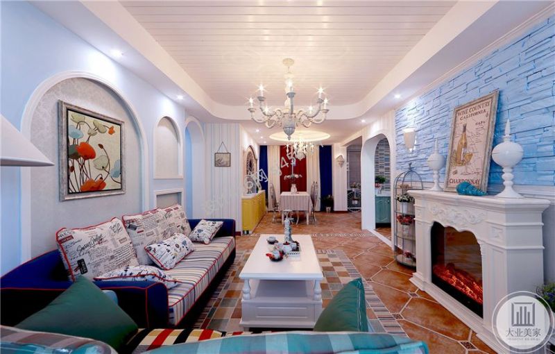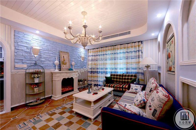 复地雍湖湾地中海风格200平米客厅装修效果图