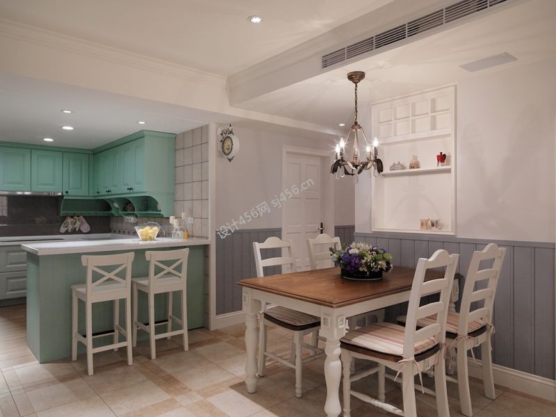 绿地中心125平米地中海田园风格三居装修案例风效果图