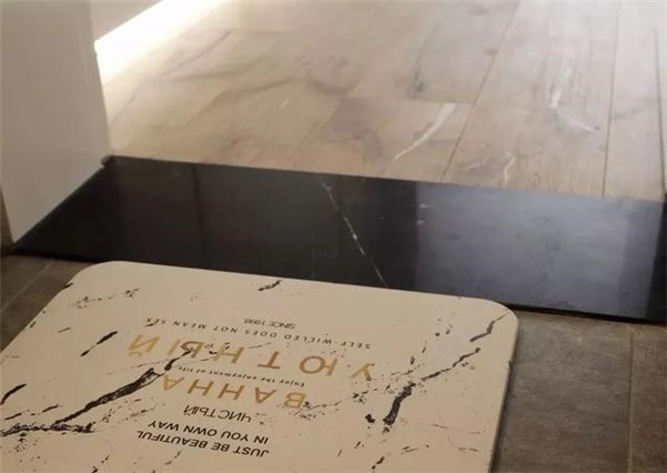 黑色作为一种经典的元素,小范围运用可以说是百搭的存在,尤其是在门槛石这个位置,采用黑色的设计可以让门槛石的空间过渡视觉更加明显,增加空间的划分感。