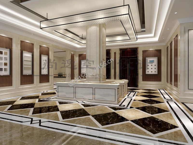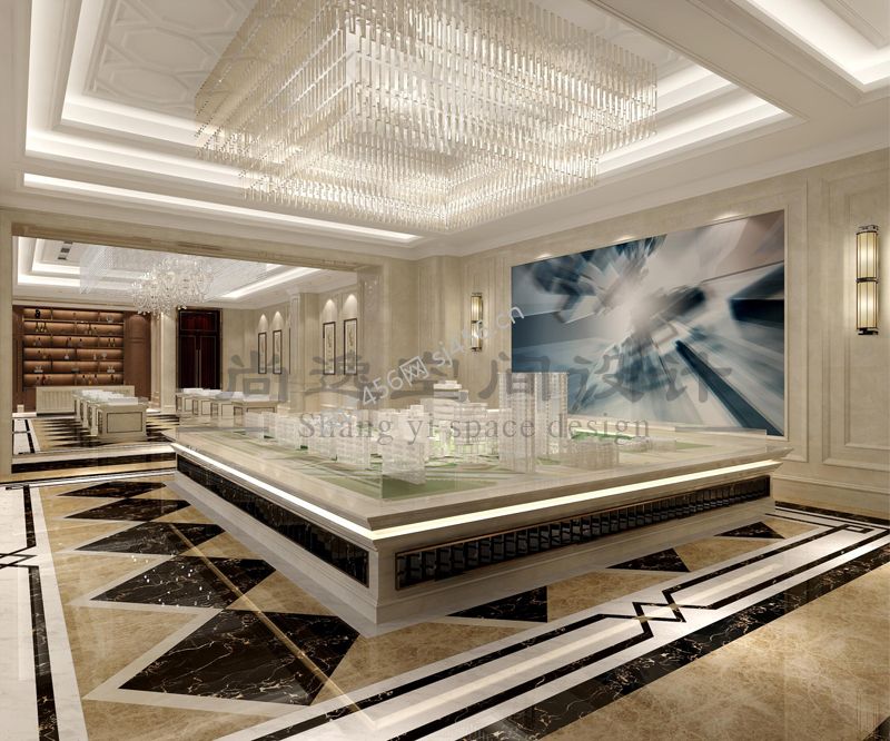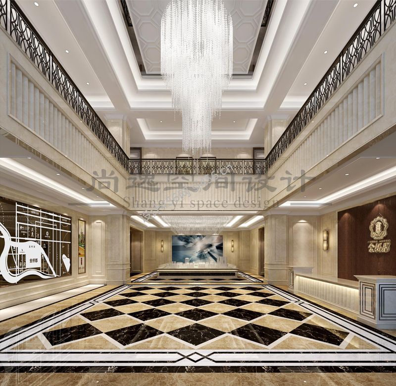 简欧式风格800平米售楼部大厅吊顶装修效果图